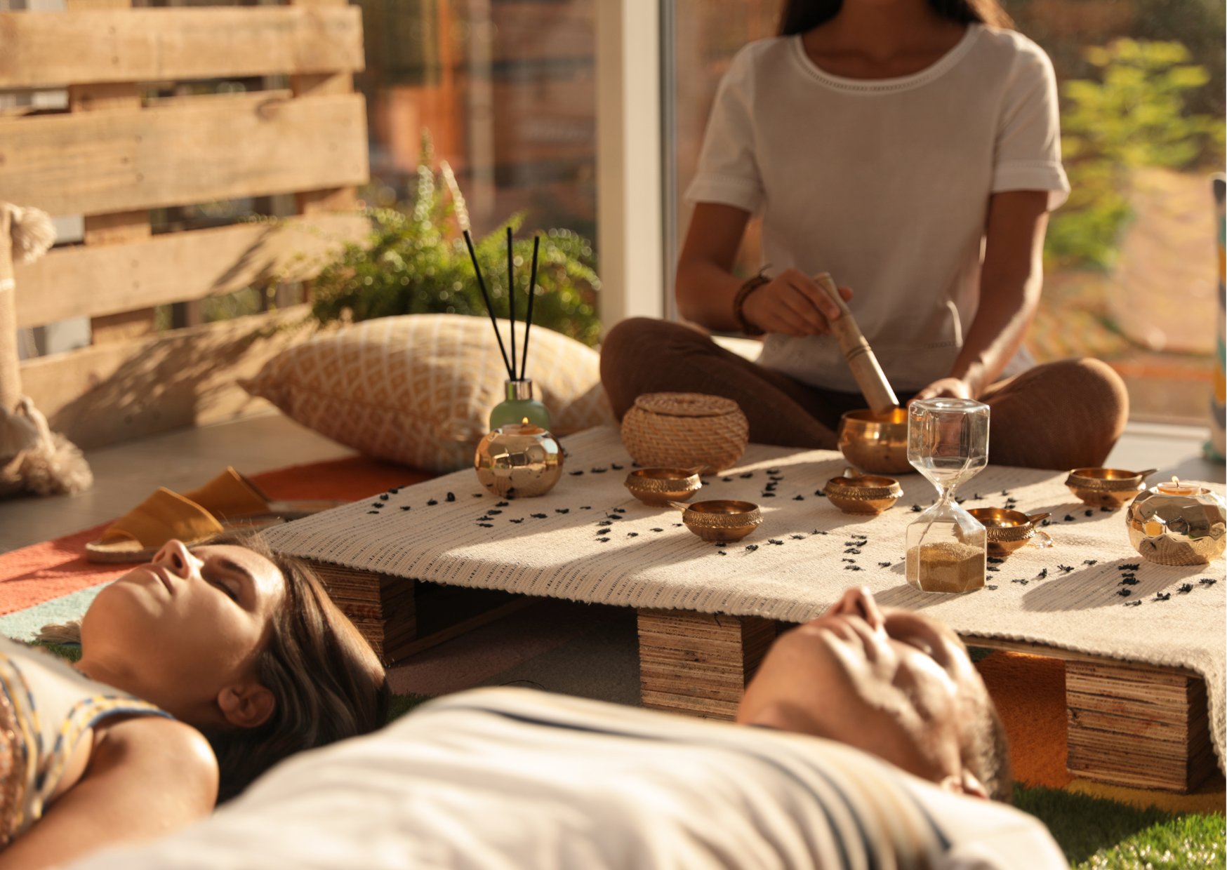 Lass dich von den sanften Klängen und Vibrationen der Schalen in eine tiefe Ruhe tragen.